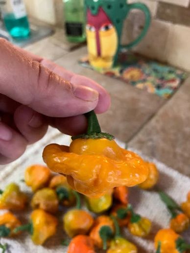 The Scotch Bonnet Pepper has a slightly sweet flavor like a tomato with a hint of apples and cherries. It's still hot at a Scoville Heat Unit of 100,000 to 350,000